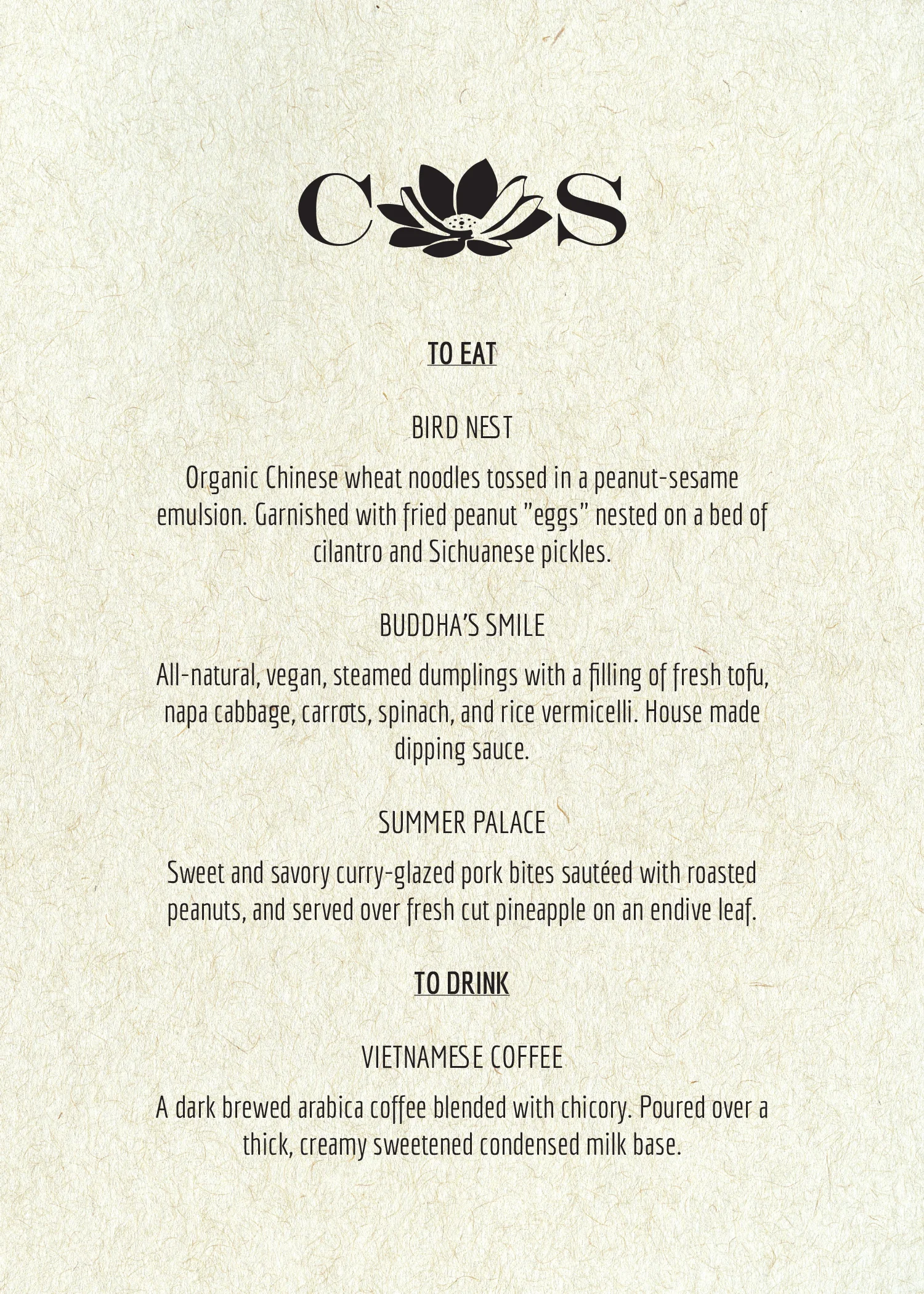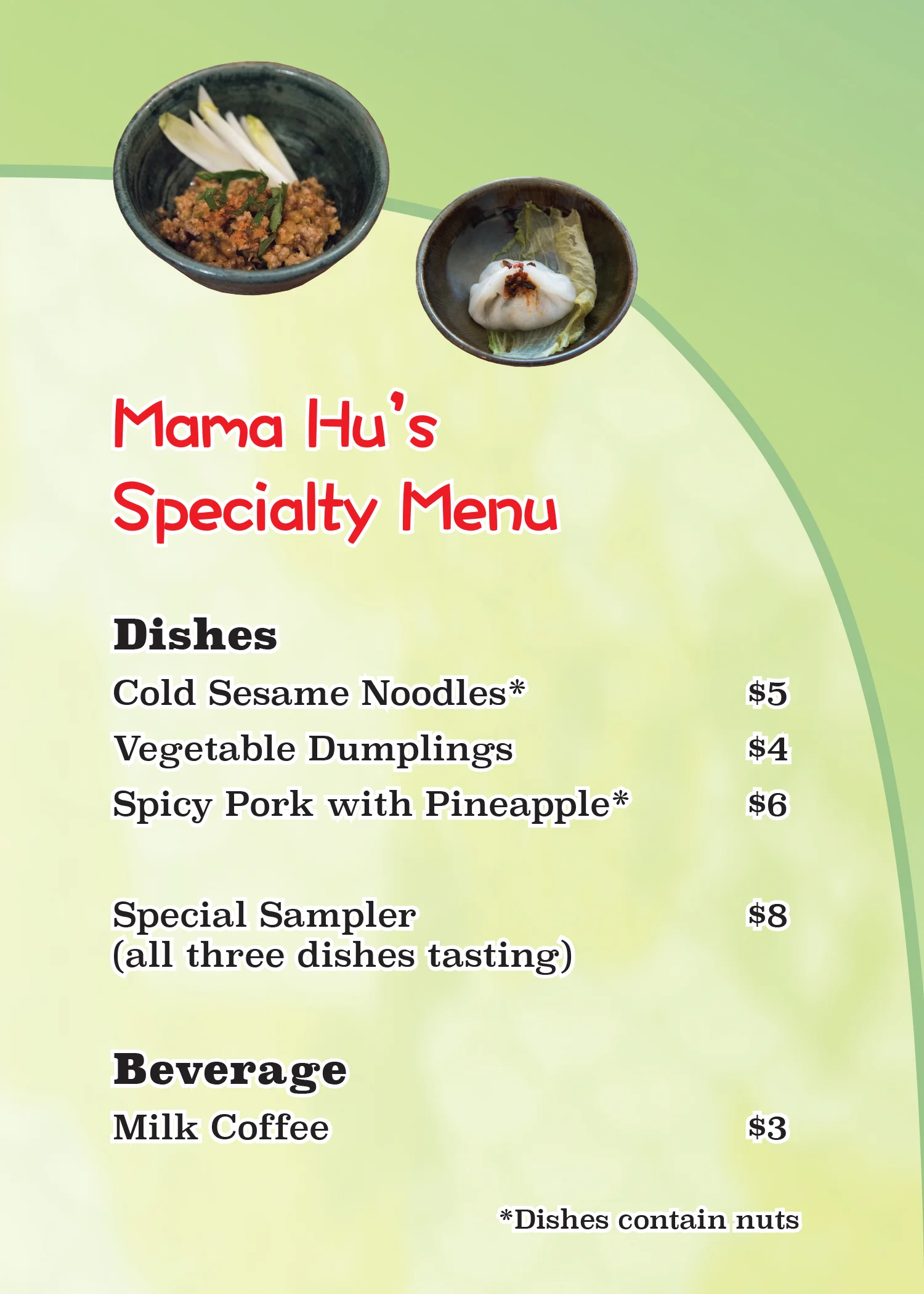 Mama Hu’s Specialty menu, 2016